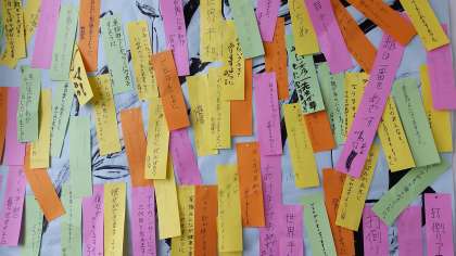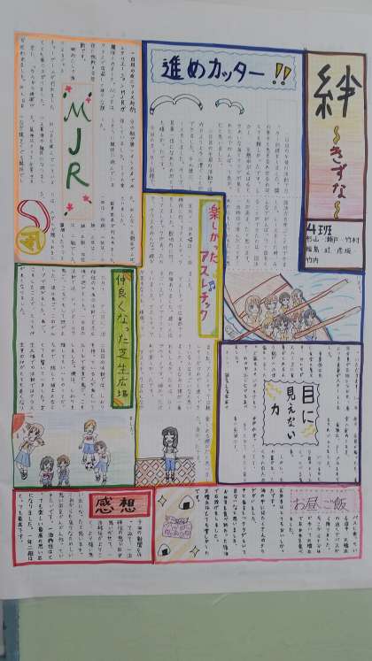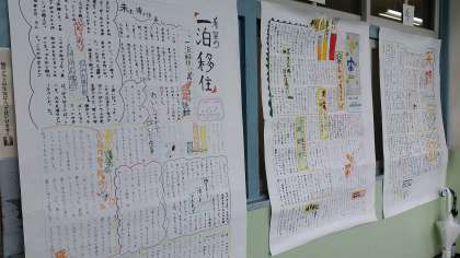 1年生の期末懇談には、一泊移住を主題とする壁新聞や七夕の短冊を掲示しています。懇談の待ち時間等に鑑賞のほど、よろしくお願いいたします。