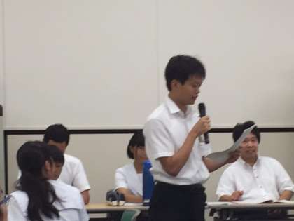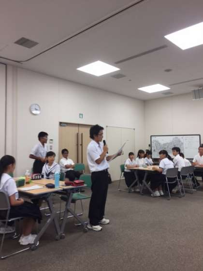 淀川区役所にて区内の中学校生徒会が集まり、交流会が開催されました。最初に各校の取組を発表し、次にグループに分かれて『睡眠時間の確保』や『暮らしやすい淀川区の街づくり』というテーマで活発な意見交換を行いました。