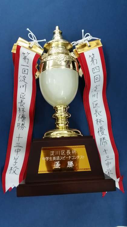 『私にとっての英語』というテーマで「第4回淀川区長杯中学生英語スピーチコンテスト」に挑み、優勝しました。4年連続の個人優勝で、再び優勝カップを持ち帰ることができました。