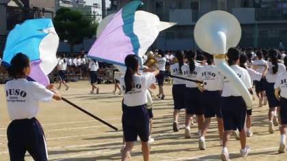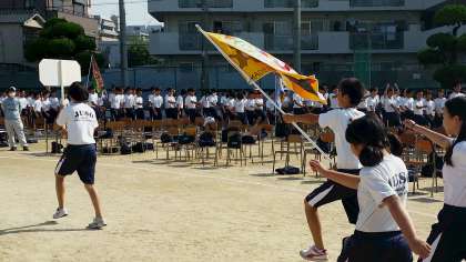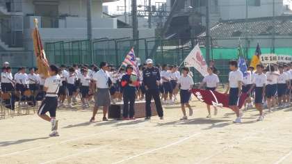 晴天下、生徒は体育大会予行に対して真剣に取り組んでいます。体育大会当日の勇姿を期待してください!