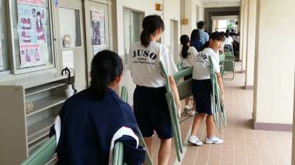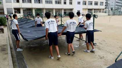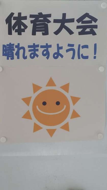 十三中学校の“テルテル坊主”の恩恵にて雨はやみました。依然としてグランド状態が緩いので、グランド外の準備に限定されています。明日、部活動部員が早朝7時に集合して体育大会の会場設営をします。