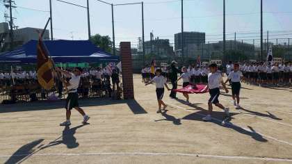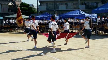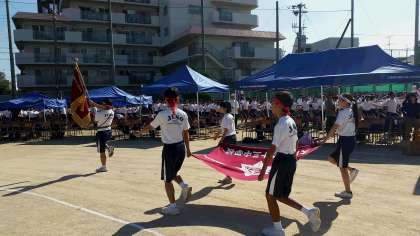 先導する校旗・生徒会旗を持つ生徒会役員です。立派に大役を果たしてくれました。