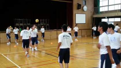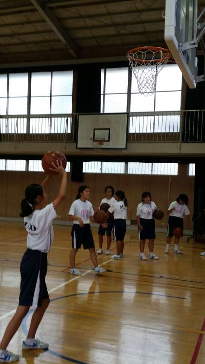 雨天のため体育館にて体育の授業(女子はバスケットボール・男子はハンドボール)です。体育大会にて完全燃焼後も元気一杯です。中学生のパワーには脱帽です。