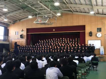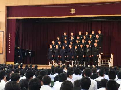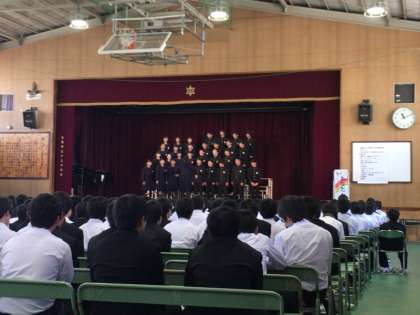 全力を出し切り、各生徒からは達成感・成就感の表情が窺えました。金賞は1組、銀賞は2・5組、銅賞は3・4組との結果発表があり、最後の締めくくりは全体合唱です。後輩の良き模範となりました。