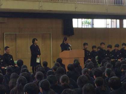 後期の学校代表を選ぶ生徒会役員選挙が行われました。立候補者・応援演説者の熱の入った演説に全員が真剣に耳を傾けていました。「学校をよくしたい!」という全員の想いが感じられる演説会でした。