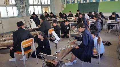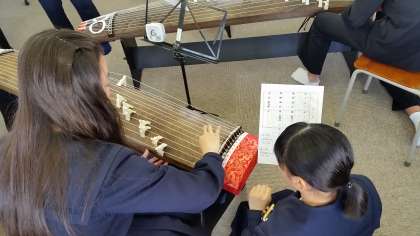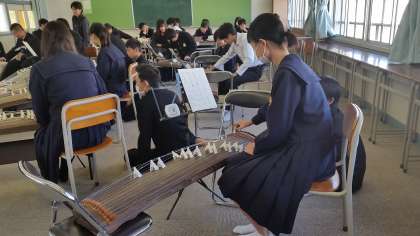 3年生音楽の授業では、箏に親しむため『さくら』に挑戦しました。和の音色を堪能しました。