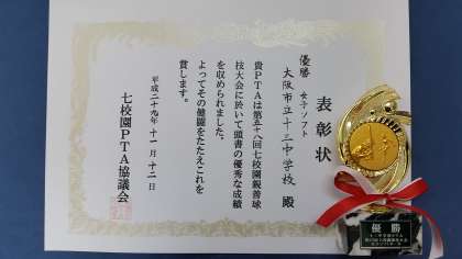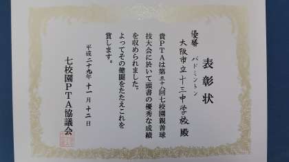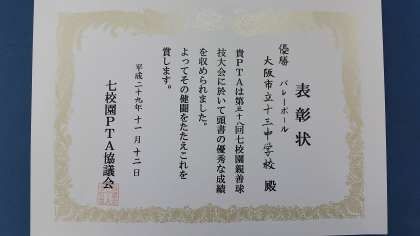 11/12(日)に7校園PTA球技大会が開催されました。バドミントンの部・バレーボールの部・女子ソフトボールの部において、3部門完全優勝成し遂げました。なお、バレーボールチームにおいて、松田先生と塩路先生が若さあふれるプレーで勝利に貢献しました。