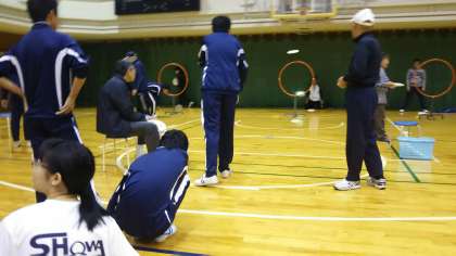 アミティ舞洲にて、フライングディスクやボッチャなどの活動をしました。他校の生徒や先生たちと一緒に体を動かし、良きふれあい経験ができました。