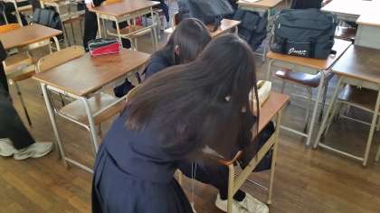 早朝より登校して、テスト勉強する1年生。最後まであきらめない姿勢に満点です!
