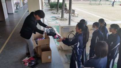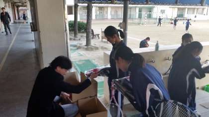 テニス部では購入を希望した生徒にウインドブレーカーを配付しました。これで寒い中でもさらに身を入れた練習ができます。
