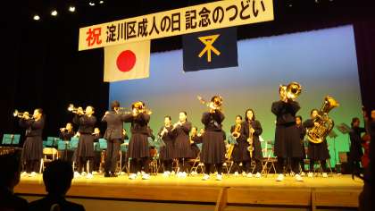 わが十三中学校吹奏楽部が、新成人の皆さんの門出をお祝いしました。