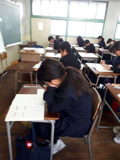 チャレンジテストの対象科目は、1年生は3教科(英・数・国)2年生は5教科(英・数・国・理・社)です。1年生は2学期末からチャレンジテスト対策をしてきたので、実力を発揮できました。『人事を尽くして天命を待つ』心境です。次は1/26(金)の実力テスト(4教科:数・国・理・社)に向けて、猪突猛進!
