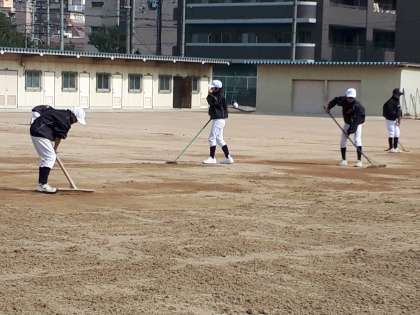明日の練習試合に向けてグランド整備です。新北野中学校・阪南中学校・上町中学校・築港中学校との練習試合を8時30分より行います。平成30年度の新入生も是非見学に来てください!