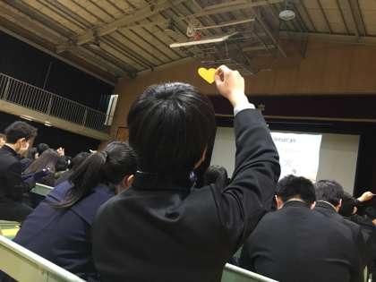 生命の誕生(ハートの紙には受精卵の大きさ、直径0.1mmの穴が開いています)から始まり、命を生み出すことがどれだけ尊いことか、そして自分自身を大切にしていくことの大切さをお話ししてくださいました。生徒たちは、パートナーを持つこと、命を生み出すことについて深く考え、自分自身がかけがえのない存在であることを実感できたと思います。