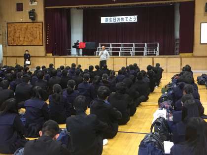 誕生日紹介や表彰などを行っている時には、リラックスしている様子も見られましたが、出願の話になると真剣そのもの。担当教員からの説明をしっかり聞いていました。さすがですね。
