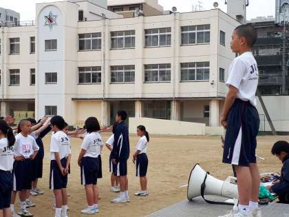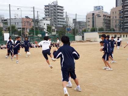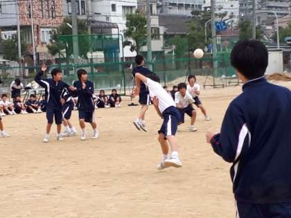 前回雨天延期となり、本日も降水確率80%でしたが、1年生の「球技大会がやりたいんや!」という思いが天に届いたようです。クラスの団結力によるチームプレーです。大きくこの1年間で成長しました。今日卒業した6年生の先導、先輩の意地を見せてください。