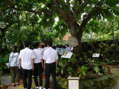 梅雨のシーズンの沖縄らしく、朝から雨模様。フルーツランドの温室を見学して、お買いもの。試食コーナーが人気です。その後国際通りへ。途中から雨もあがり、那覇空港に向かいます。