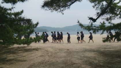 1年生一泊移住 天橋立で昼食をとりました。これから宿舎に向かいます。