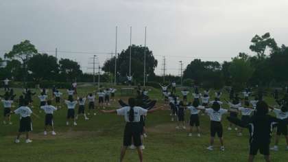 7:00頃 朝のつどいをおこないました。みんな元気です。ラジオ体操にも気合が入っています。