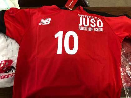 本日サッカー部1年生のユニフォームが届きました。届いたばかりのユニフォームを手にとった生徒たちの目がキラキラと輝いていました。
