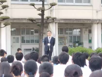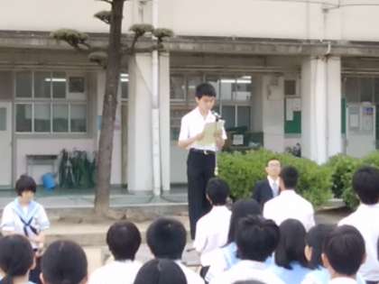 全校集会で生徒会が主催した学校標語コンクールの表彰がありました。