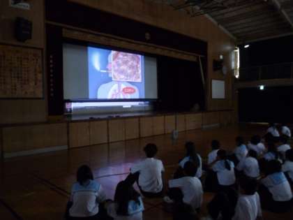 15分程度のVTRを見た後、先生方からタバコについての身近な話をしていただきました。健康被害のこと、経済的に負担になること、その他生活にも悪い影響がたくさん出ることなどをこの教室で学ぶことができたと思います。
