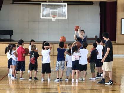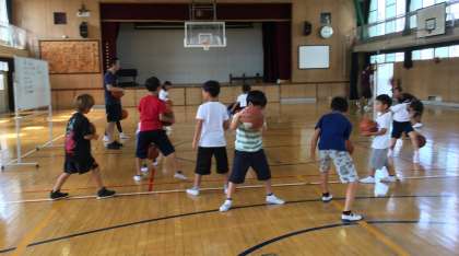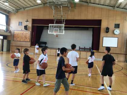 女子7名、男子10名の小学生がドリブルやシュート練習をしました。