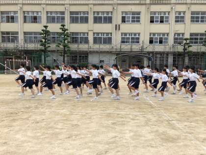 学年競技「デカムカデ」は、全体の息を合わせるのがとても難しく、今日は苦戦している人がたくさんいました。また明日の5時間目にも練習の時間があります。クラスの団結力を高めて、優勝目指してがんばりましょう。
