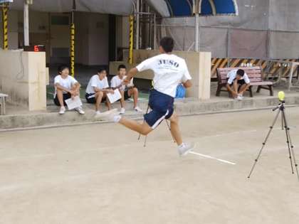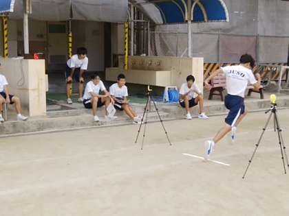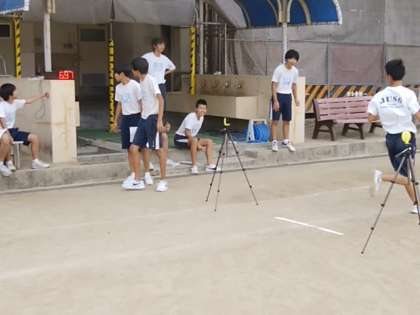 光電管を使って50mを測定しています。