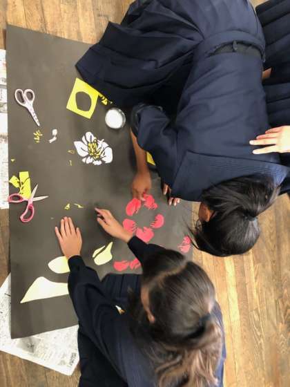 取り組みも半分を終え、1年生の切り絵は着々と進んでいます。