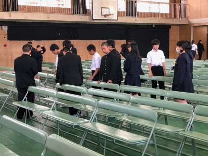 体育館の会場設営、各教科や部活動での準備、そして学年展示の切り絵の準備が順調に進みました。手伝ってくれた係・委員の生徒のみなさん、ありがとうございました。明日は中学校生活初めての文化祭。鑑賞マナーを守りつつ、存分に楽しみましょう!