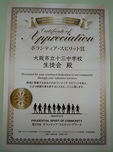 本校生徒会が地域に貢献する活動が認められ、文部科学省が後援する