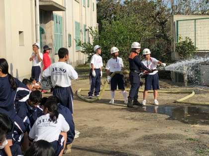 地域の方々や消防署の方にご協力いただき、可搬式ポンプでの放水体験や、土嚢づくりなど、体験を中心とした活動を行っていただきました。