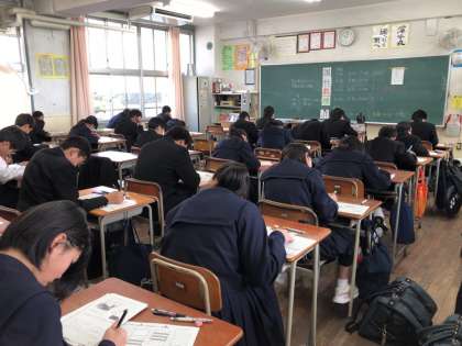金曜日に行われた実力テストの返却が本日から始まっています。定期テストと違い、テスト範囲がなく、準備の仕方などに戸惑いを感じたかもしれませんが、進路に向けての学習をするよいきっかけとなってくれることを期待しています。