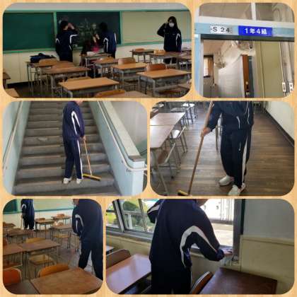 また、新2年生が新入生が通る廊下や階段を黙々とほうきで掃き掃除します。