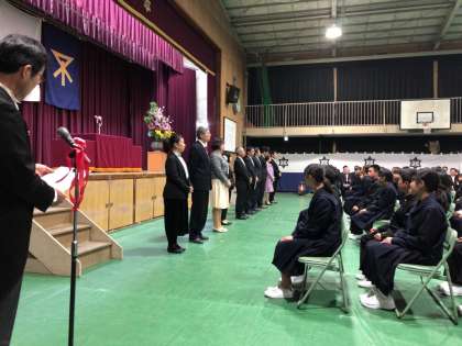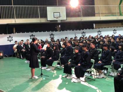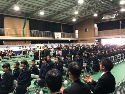 新入生たちは緊張しながらも、堂々と式典に臨んでくれました。教職員・在校生一同、74期生のみなさんとの出会いを大変うれしく思っています。これから始まる中学校生活では、新しい出会い・体験を重ね、大きく成長していってくれることでしょう。ともにたくさんの思い出を作っていきましょう。どうぞよろしくお願いします。