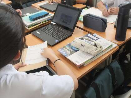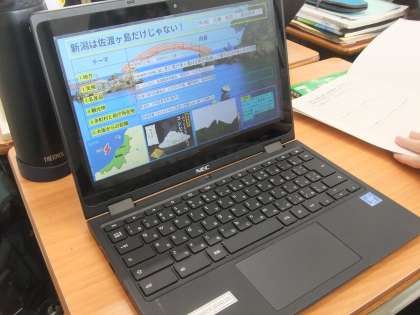 2組は社会の授業で、夏休みの訪れた場所についての紹介のパワーポイントを作成していました。どの作品も工夫を凝らしたものばかりでした。
