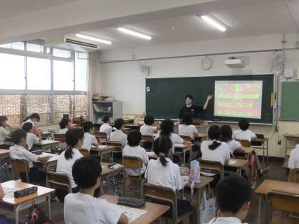 写真は十三小学校、西中島小学校、木川南小学校の様子です。十三小学校は技術、西中島小学校と木川南小学校は合同で国語でした。