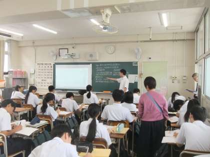 写真は英語の授業での様子です。黙々と黒板の内容を書き写しながら、先生の説明も聞いていました。
