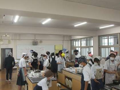 3・4限目に2年生で家庭科の調理実習を行いました。