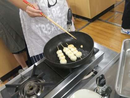 日本の伝統的な和菓子であるみたらし団子作りを通して、和食文化の良さを理解することを目標に、班で協力しながら調理を進めました。