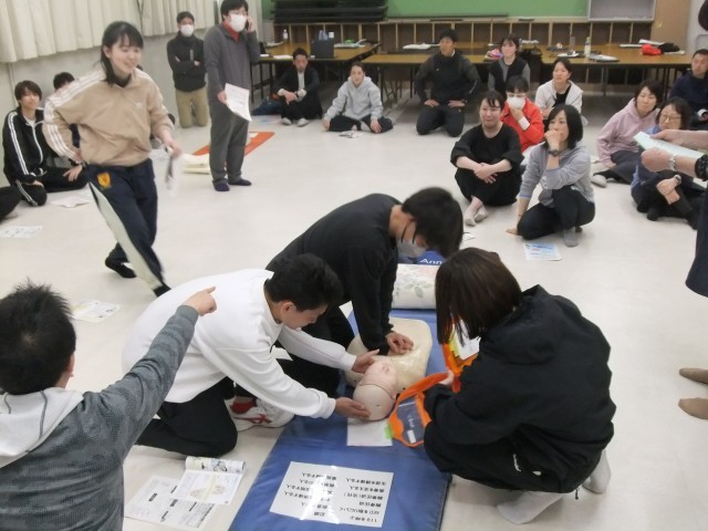 胸骨圧迫の方法やAEDの使用方法について確認しました。