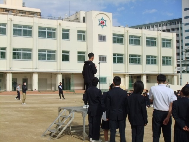次に、生活指導担当の先生からは2点の連絡がありました。1点目は正門の小門についてです。出入りが済んだら、防犯上の観点からも必ず閉めるようにしてください。2点目は水曜日に実施予定の避難訓練についてです。当日は、グラウンドに避難した後、出身小学校ごとに分かれ、さらに地区ごとに分かれます。教室掲示される地図を参考に、スムーズに訓練ができるよう、準備をしておいてください。