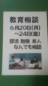 教育相談週間(6/20〜24)です。部活動、勉強、友人関係等、何でも担任に相談...