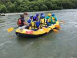 ラフティングで“お腹ヘリコプター”。腹ごしらえして、いざ、帰途へ。