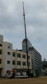 ガスヒーポン室外機の更新です。クレーンによる新旧機の入れ替え作業、本日で完了予...