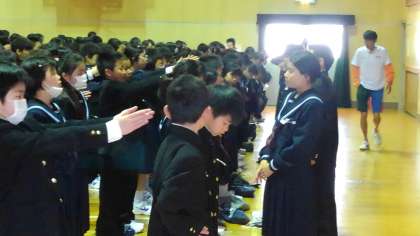 先生指示から各クラス委員長の指示による集合・整列に変わります。