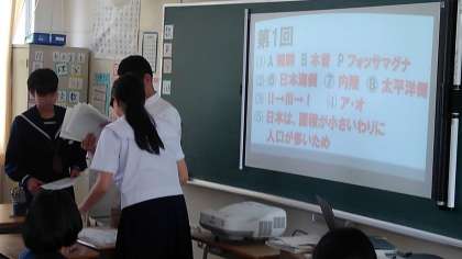 写真上はプロジェクターで解答が映写されています。