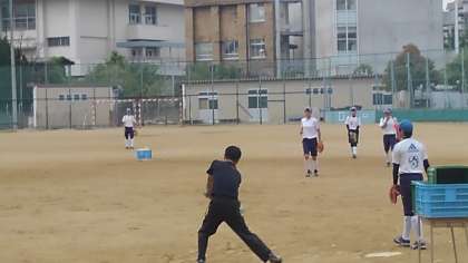 女子ソフトボールがグランドで朝練中です。春季大会次戦に備えます。