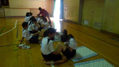 女子上体起こし測定の様子です。